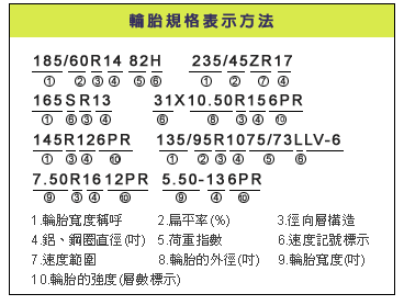 輪胎規格說明