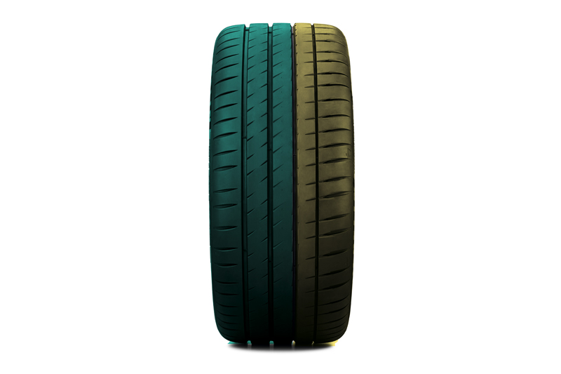 •外側 :全新的”複合彈性體”,專為乾燥路面設計,強化輪胎抓地力。
